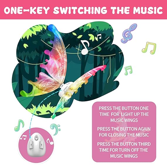 - 【LED Butterfly Wings】Our Electric Fairy Wings for Girls are not just any ordinary butterfly wings. Press of the switch, these wings can actually flap! Made with shiny organza and a magical gradient look, these wings will capture everyone's attention from different angles. Requires 4 AA batteries (NOT INCLUDED)