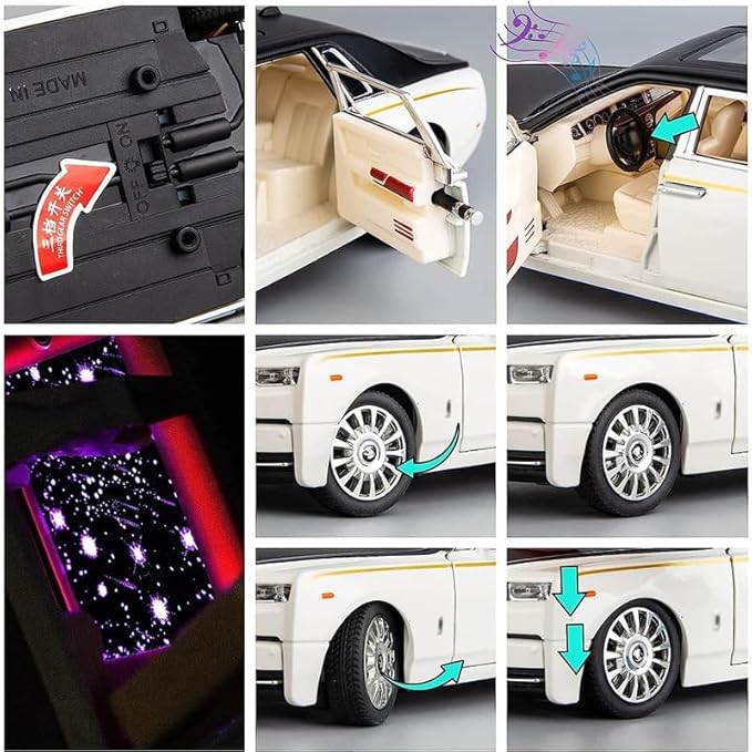 - 【Multiple Functions】: Pull back model car, engine sound and light. Press the two wheels of the front car to trigger the engine sound and lights, and open the door to trigger the lights of the front and rear lights. Place the car on the ground, hold down the car body and pull it back, the model car will drive forward.