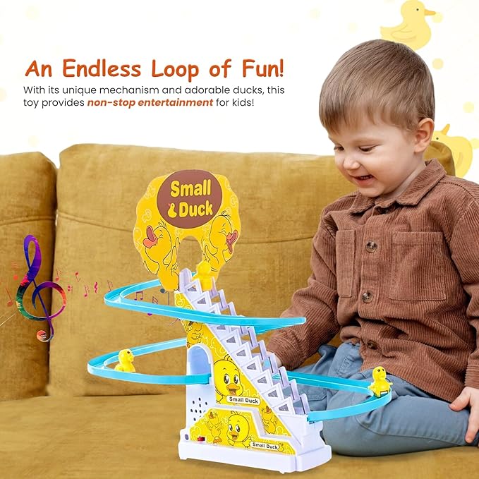 - Automatic Stair-Climbing Ducklings: The adorable ducklings automatically climb the stairs and glide down the track, creating a continuous and interactive play cycle that keeps children entertained